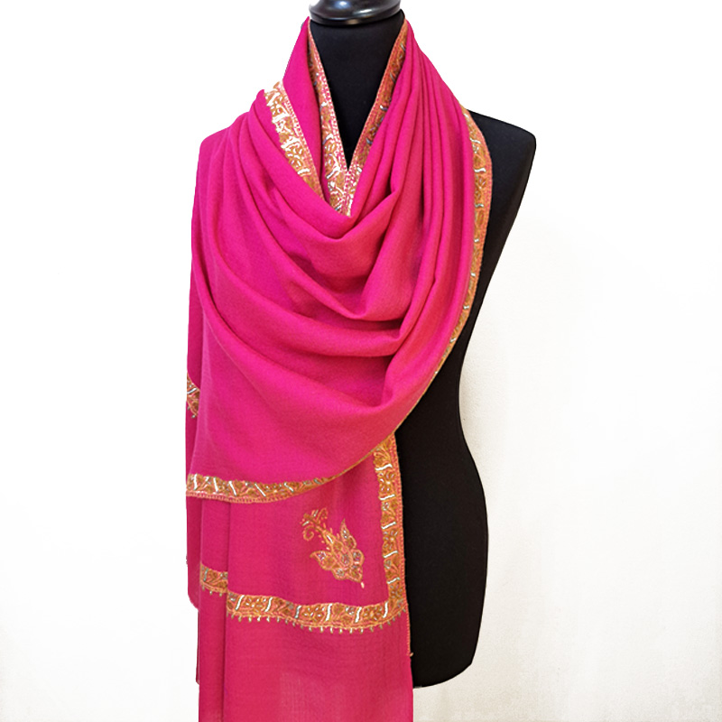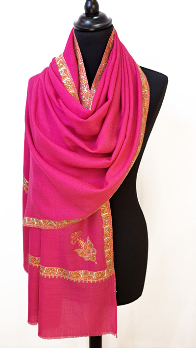 L’étole en cachemire Magenta, dans une nuance vibrante de fuchsia, affiche un style à la fois audacieux et sophistiqué. Brodée à la main elle présente une esthétique captivante et charmante.